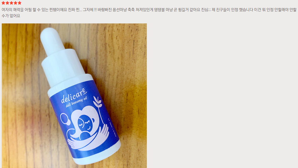 여성들의 고민 해결에 도움을 줄 델리보소미오일입니다. 가슴 마사지 오일로 지난번에 후기를 알려드린 포코엘 크림과 비슷한 맥락의 크림입니다. 내돈내산 후기 정보로 기호에 맞게 선택하셔서 어떤 가슴 마사지 크림이 나에게 좋을지 비교해 보시면 좋을 것 같습니다.