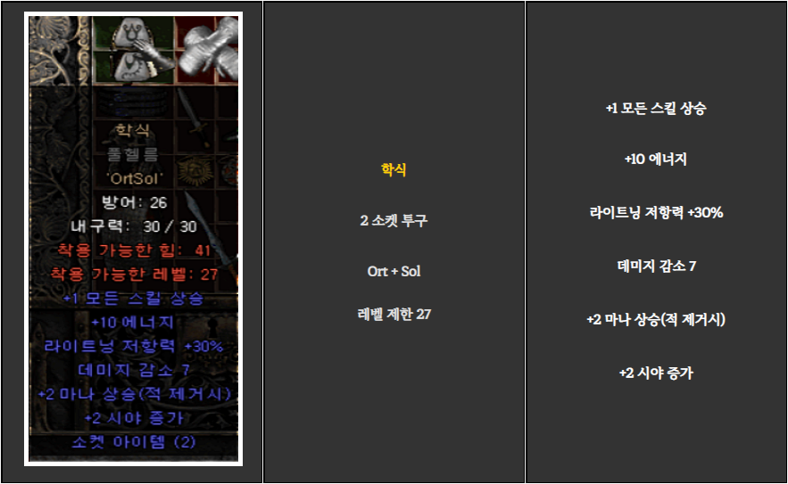2.소켓은 회색 소켓아이템에만 사용이 가능합니다. 레어아이템/유니크아이템/매직아이템/세트아이템에 소켓이 비어있다고 해서 룬을 넣으셔도 아무런 옵션이 적용되지 않습니다.